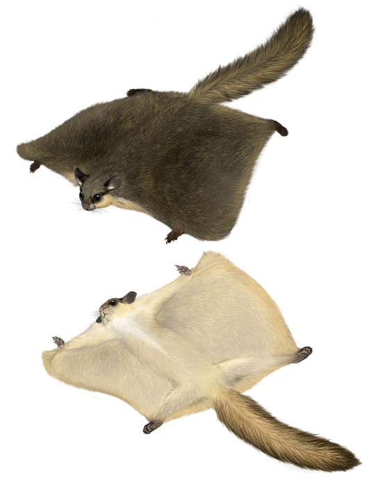 論文第一作者、中國科學(xué)院昆明動(dòng)物研究所副研究員李權(quán)介紹,松鼠依據(jù)生活型分成了樹松鼠、地松鼠和飛松鼠三類。飛松鼠在漢語中被稱為鼯鼠(大體型)或飛鼠(小體型)?;涗涳@示飛松鼠起源于歐洲或北美洲,在獲得了滑翔能力后,飛松鼠與系統(tǒng)發(fā)育位置相似的其他松鼠“親戚”相比分布范圍和多樣性都得到了顯著提升,廣布于歐亞大陸和北美洲的多種森林地帶,體重從13.5克到超過2千克不等。