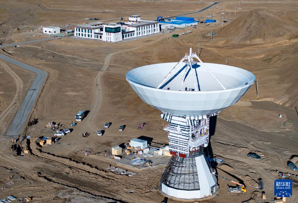 建設(shè)中的日喀則40米射電望遠(yuǎn)鏡(無人機(jī)照片,11月7日攝)。新華社記者 姜帆 攝 ??