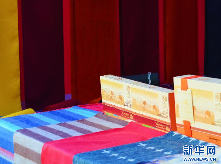 物交會展位上懸掛和擺放的澤貼爾。新華網(wǎng) 柑丹鴦琦攝
