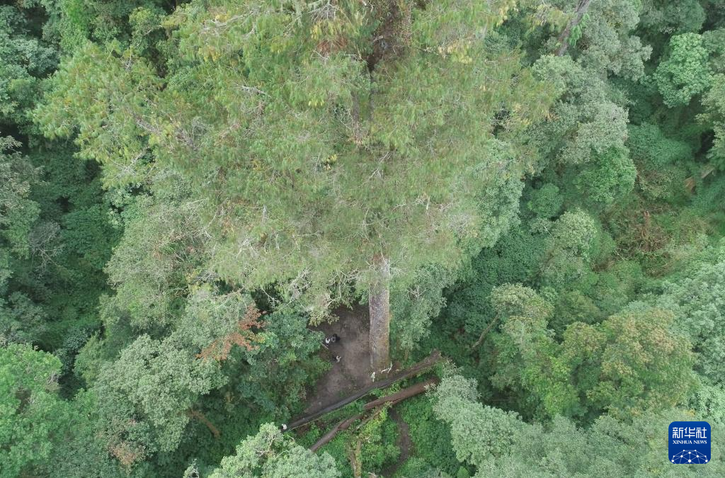 這是12月21日拍攝的西藏墨脫縣的一棵高達76.8米的大樹(無人機照片)。新華社記者 丁汀 攝