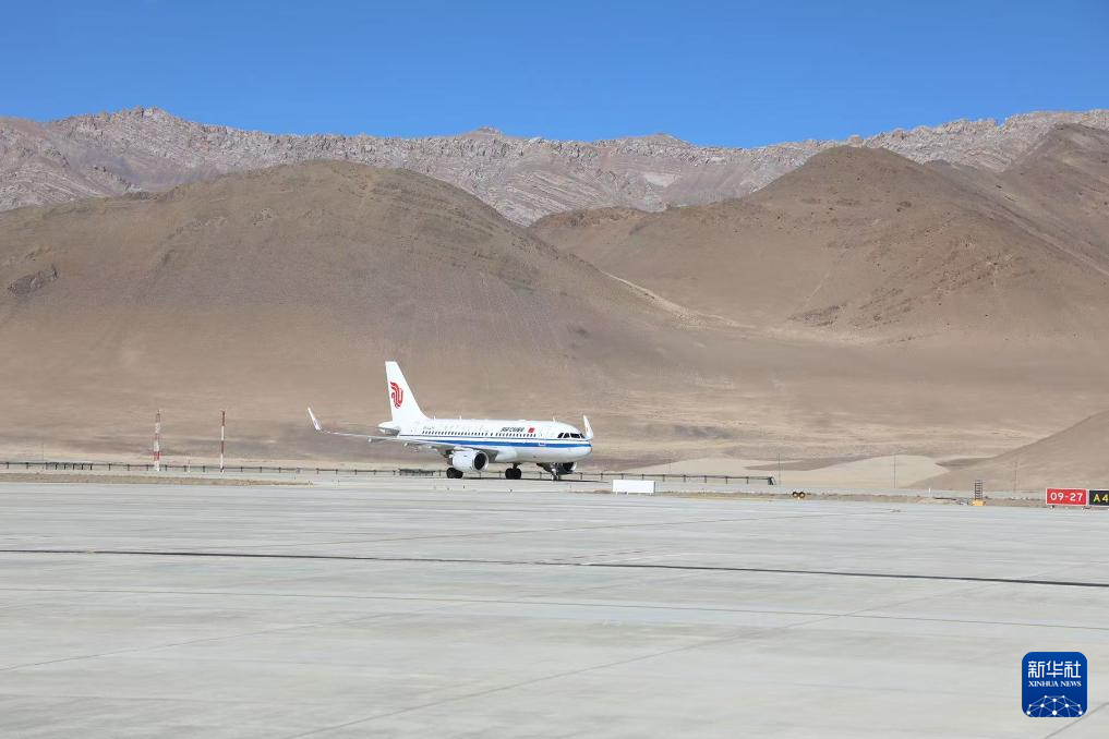 國航CA4431航班安全降落在日喀則定日機場。(民航西藏自治區(qū)管理局供圖)