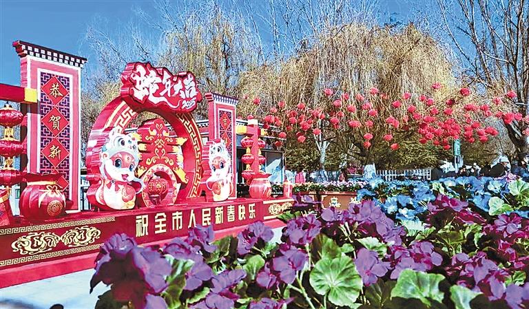 隨著新春的臨近,連日來(lái),拉薩大街小巷燈籠高掛,到處呈現(xiàn)出濃濃的節(jié)日氣氛。 圖為裝飾一新的拉薩市宗角祿康公園大門。 記者 洛桑 王敏 攝