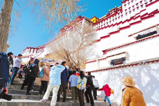 圖為春節(jié)假期期間,游客在參觀布達(dá)拉宮。記者 平措次仁 攝