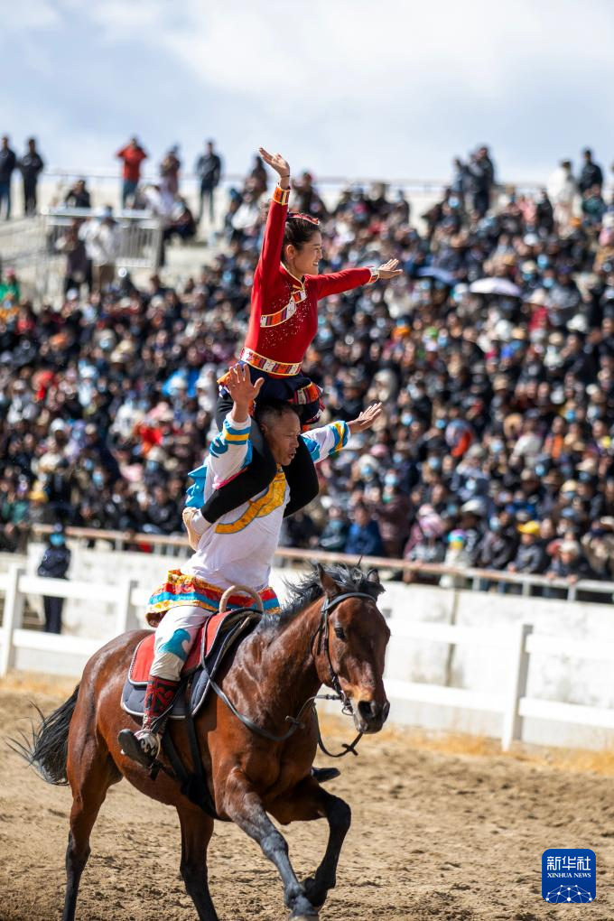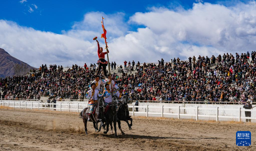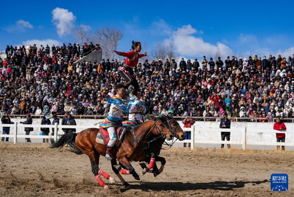 3月2日,馬術(shù)隊員在表演傳統(tǒng)馬術(shù)項目。新華社記者 晉美多吉 攝??