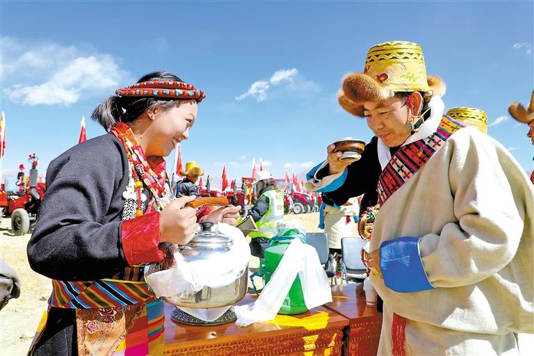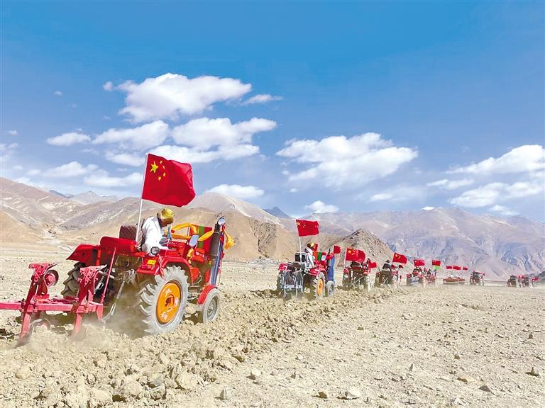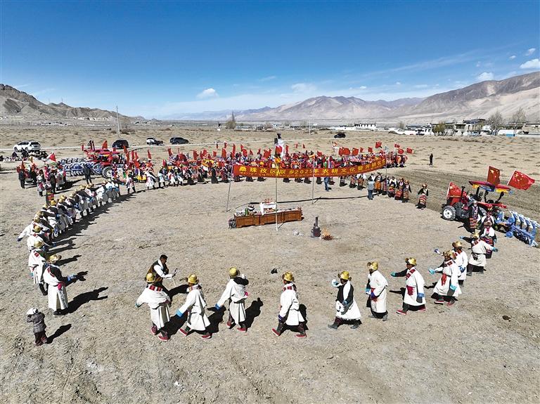 在薩嘎縣旦嘎鄉(xiāng)旦嘎村、薩當村,村民們早早聚集在田間,喝酥油茶、品青稞酒,歡聲笑語中滿是對新一年豐收的期待。與此同時,現(xiàn)代農(nóng)業(yè)機械的轟鳴聲回響在田間,勾勒出傳統(tǒng)農(nóng)耕文明與現(xiàn)代農(nóng)業(yè)技術(shù)交融的生動圖景。薩當村村民次仁多吉感慨地說:“過去,12畝地要全家忙半個月;如今,有了機械化助力,僅需3天就能完成。機械化不僅提高了效率,還解放了勞動力?,F(xiàn)在,我有更多時間外出務(wù)工,增加收入。去年,我們家總收入突破10萬元。”旦嘎鄉(xiāng)農(nóng)牧綜合服務(wù)中心主任旦真介紹,旦嘎鄉(xiāng)早謀劃、早部署,組織農(nóng)牧技術(shù)人員、科技特派員深入各村持續(xù)開展青稞選種、科學施肥、灌溉等技術(shù)指導,確保今年全鄉(xiāng)農(nóng)業(yè)生產(chǎn)能夠順利開局、穩(wěn)步前行。