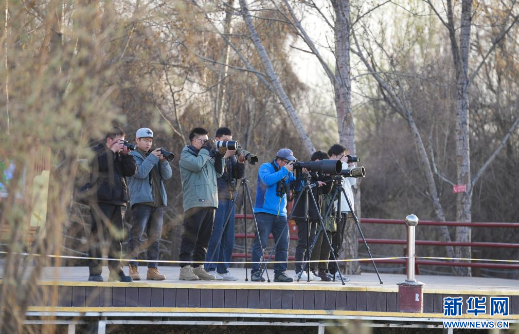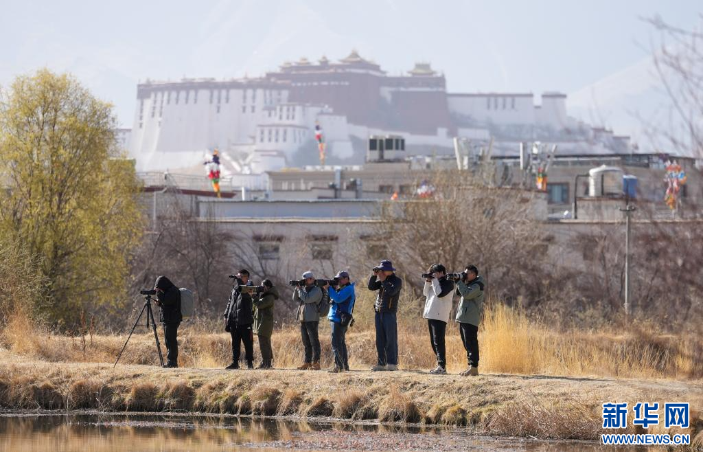 3月29日,參加采風(fēng)活動(dòng)的成員在拉魯濕地觀鳥拍照。(新華社記者 晉美多吉 攝)