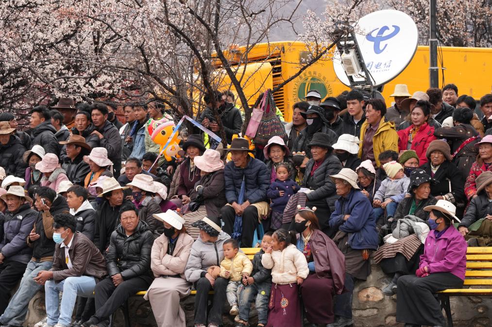 昌都市洛隆縣第十一屆俄西杏花文化旅游節(jié)開幕式現(xiàn)場(chǎng)的觀眾。新華社發(fā) (格桑赤列攝)