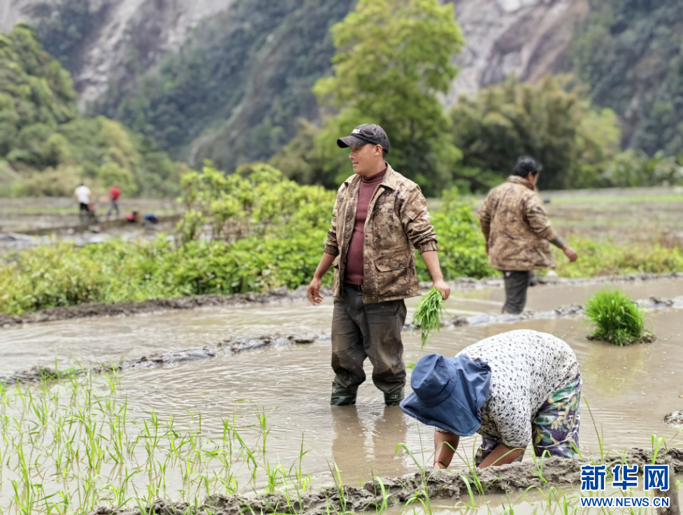 近日,隨著氣溫升高,西藏墨脫縣迎來水稻插秧季,當(dāng)?shù)厝罕姄屪マr(nóng)時(shí),田間一派繁忙景象。