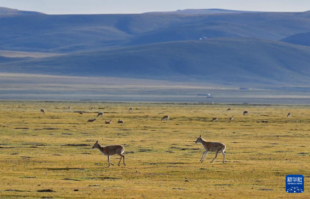 色林錯(cuò)國家級(jí)自然保護(hù)區(qū)那曲市申扎縣片區(qū)里的藏羚羊(2024年8月26日攝)。新華社記者 張汝鋒 攝