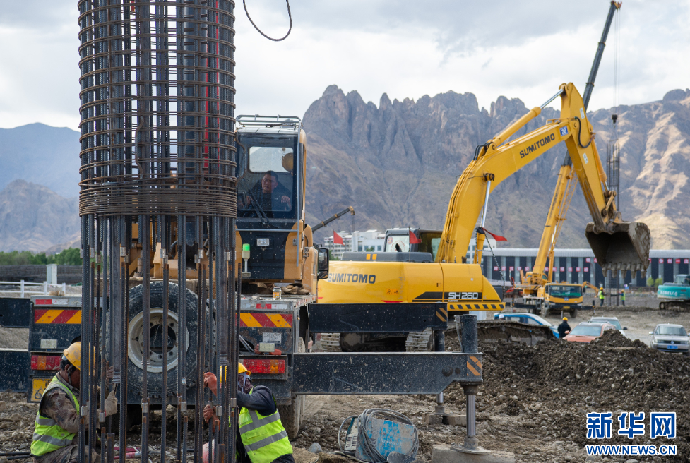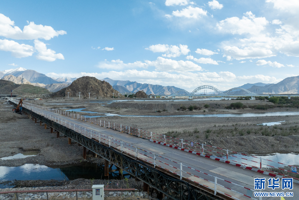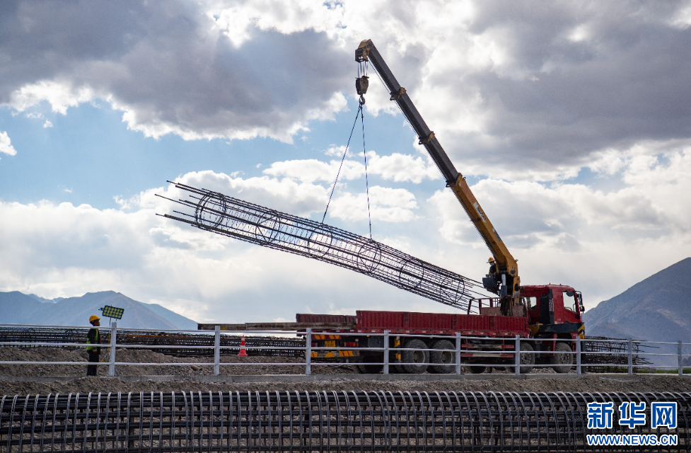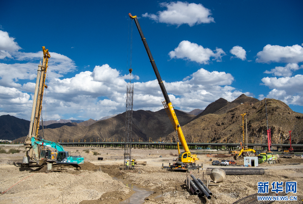 這是5月12日拍攝的拉薩高新大橋施工現(xiàn)場(chǎng)。新華網(wǎng) 旦增努布 攝