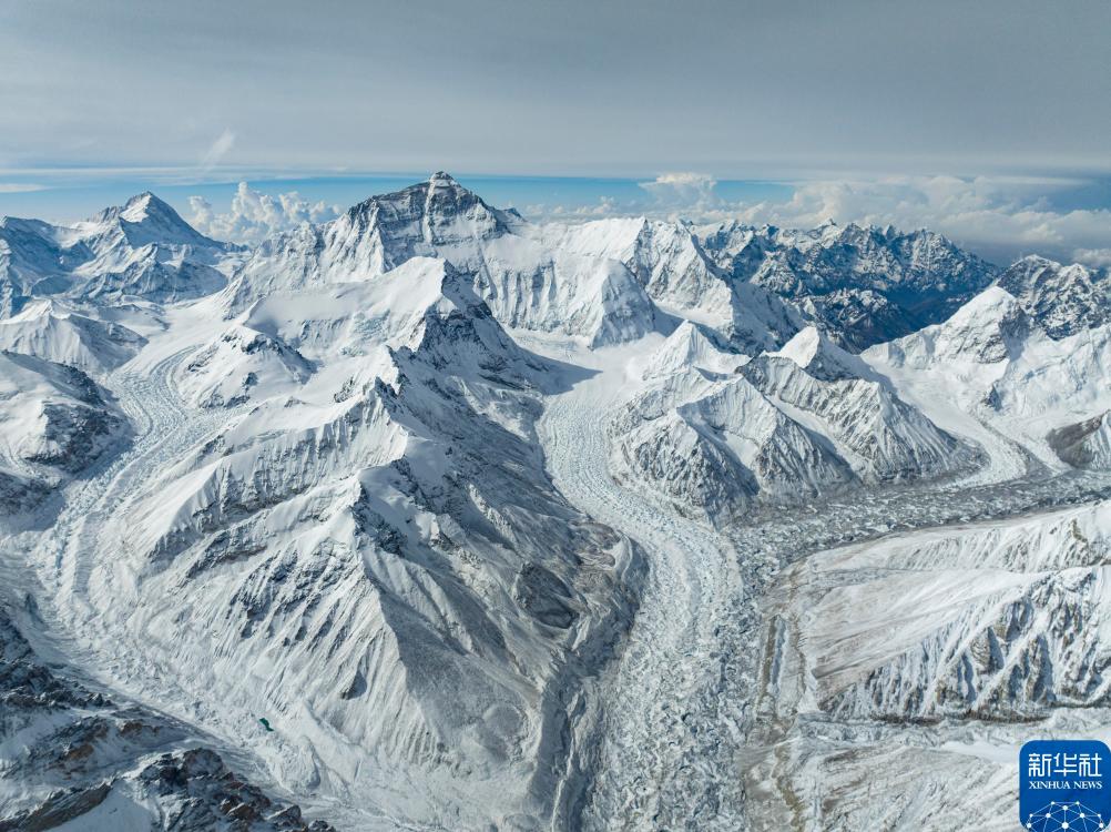 2023年5月23日在海拔8400米左右高空拍攝的珠穆朗瑪峰。新華社記者 孫非 攝