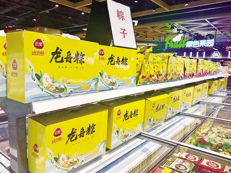 哈達(dá)購物廣場內(nèi),上架了口味豐富的粽子。