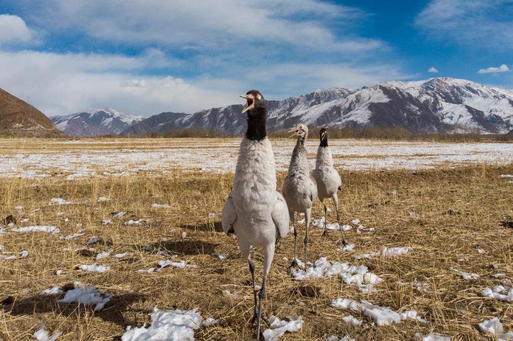“潔白的仙鶴,請把雙翅借給我,不飛遙遠的地方,到理塘轉(zhuǎn)一轉(zhuǎn)就會回?!边@首在西藏家喻戶曉的民歌中提到的“仙鶴”,就是黑頸鶴。