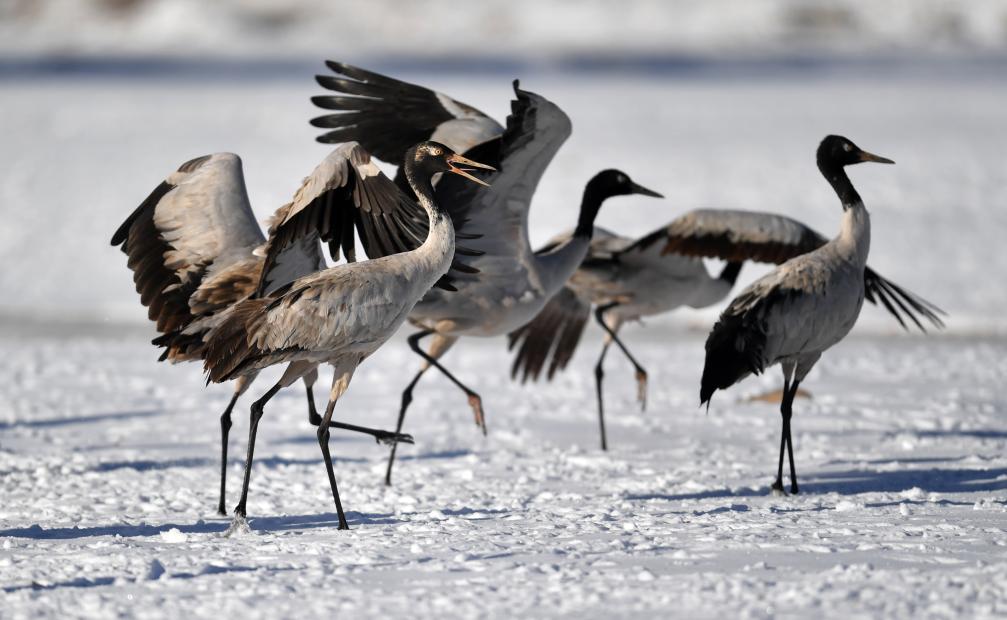 每年3月中下旬的初春時節(jié),黑頸鶴向繁殖地遷徙;秋季的9月,開始結(jié)群帶領(lǐng)幼鳥南遷越冬,遷徙路線分為東線、中線和西線,于10月中旬飛抵越冬地。