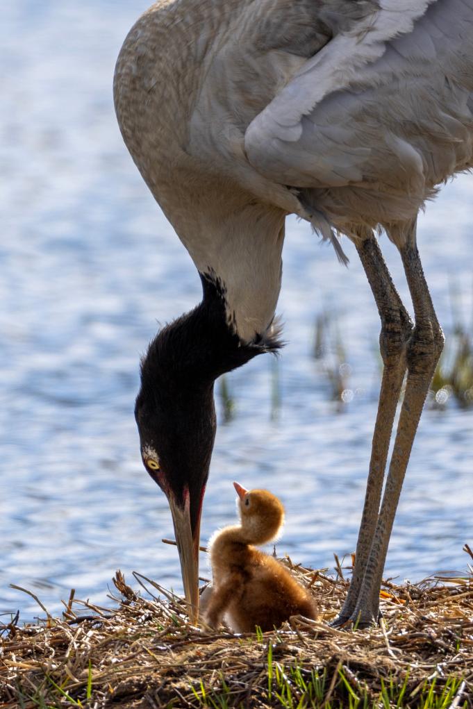 圖片中的這對黑頸鶴夫婦已連續(xù)8年在那曲市申扎縣申扎藏布濕地營巢育雛,并受到了普遍關(guān)注,每年都有攝影師前往拍攝。2024年,我們拍到了它們孵蛋的畫面。后來聽當(dāng)?shù)匾氨T說,孵出的小鶴在兩個多月大的時候不幸夭折,這突如其來的打擊使得雌鶴抑郁了很長時間,有時會無緣無故地攻擊配偶,有時還會拔掉自己的尾羽,曾經(jīng)形影不離的夫妻倆很長時間不窩在一起休息……幸運的是,如今的它們已走出悲傷。2025年6月4日,我們又拍到了它們雛鳥出殼的瞬間,如今,新出生的小家伙正在茁壯成長。