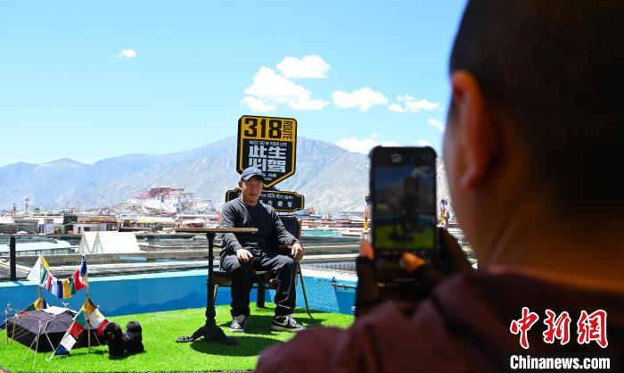 6月22日,在八廓古城,一家藏餐廳裝扮藏族特色的觀景臺吸引顧客拍照。中新社記者 趙朗 攝