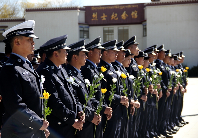 緬懷革命先烈,傳承革命精神?!拔覀儾荒芡洖闋幦∶褡褰夥藕腿嗣裥腋6I身的烈士。他們拋頭顱、灑熱血換來了我們今天的幸福生活,他們是人民心中永恒的豐碑。”在現(xiàn)場的拉薩市公安局張警官說。
