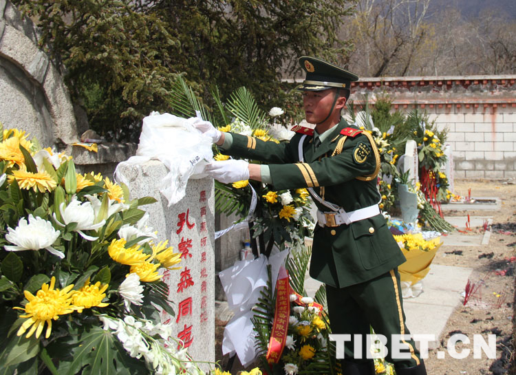 圖為西藏公安邊防官兵向先烈獻(xiàn)花