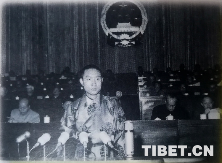 圖為1959年4月,十世班禪大師在第二屆全國人民代表大會(huì)第一次會(huì)議上發(fā)言。(圖片翻拍自《第十世班禪額爾德尼評(píng)傳》)