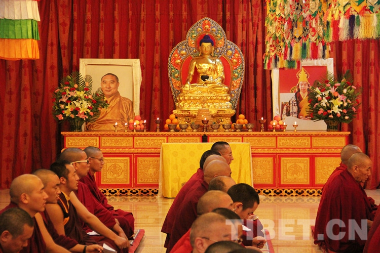 法會禮請全國政協(xié)常委、中國佛教協(xié)會副會長班禪額爾德尼o確吉杰布拈香主法,中國藏語系高級佛學(xué)院領(lǐng)導(dǎo)、經(jīng)師、學(xué)員及宗教界教職員工約130人參加法會。