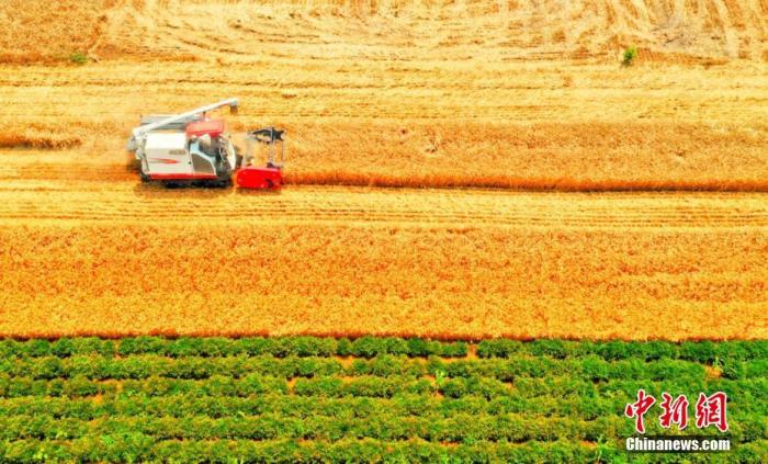 資料圖:收割機(jī)穿梭在麥田中,為農(nóng)民豐收助力。劉浩 陳杰 攝