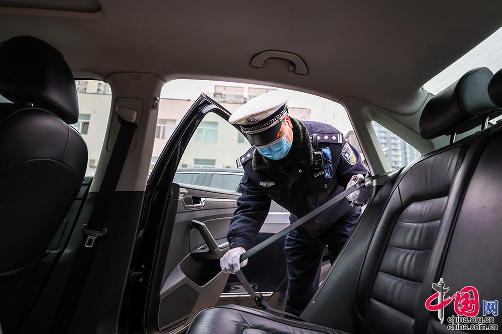專業(yè)檢查人員逐一對(duì)車內(nèi)安全帶進(jìn)行檢查并記錄。中國(guó)網(wǎng)記者 鄭亮攝