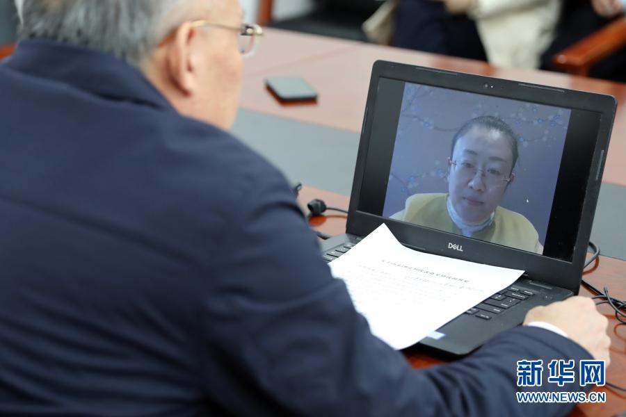 3月7日,全國人大代表、山東省泰安市農(nóng)科院食用菌研究所所長孔怡(屏幕畫面中)同農(nóng)業(yè)農(nóng)村部種業(yè)管理司副司長孫好勤在北京進行網(wǎng)絡視頻連線。這是一次不尋常的兩會“速遞”:3月5日代表提出建議,3月6日建議經(jīng)國務院辦公廳轉(zhuǎn)到農(nóng)業(yè)農(nóng)村部,3月7日中午就實現(xiàn)了部門與代表的“云對話”。新華社記者 李木子 攝