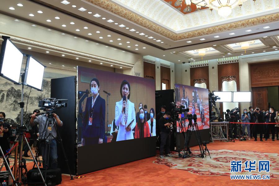 3月10日,全國政協(xié)十三屆四次會議在北京人民大會堂新聞發(fā)布廳舉行第三場“委員通道”采訪活動。這是記者(屏幕中手持話筒者)通過網(wǎng)絡視頻方式提問。新華社記者 王南 攝