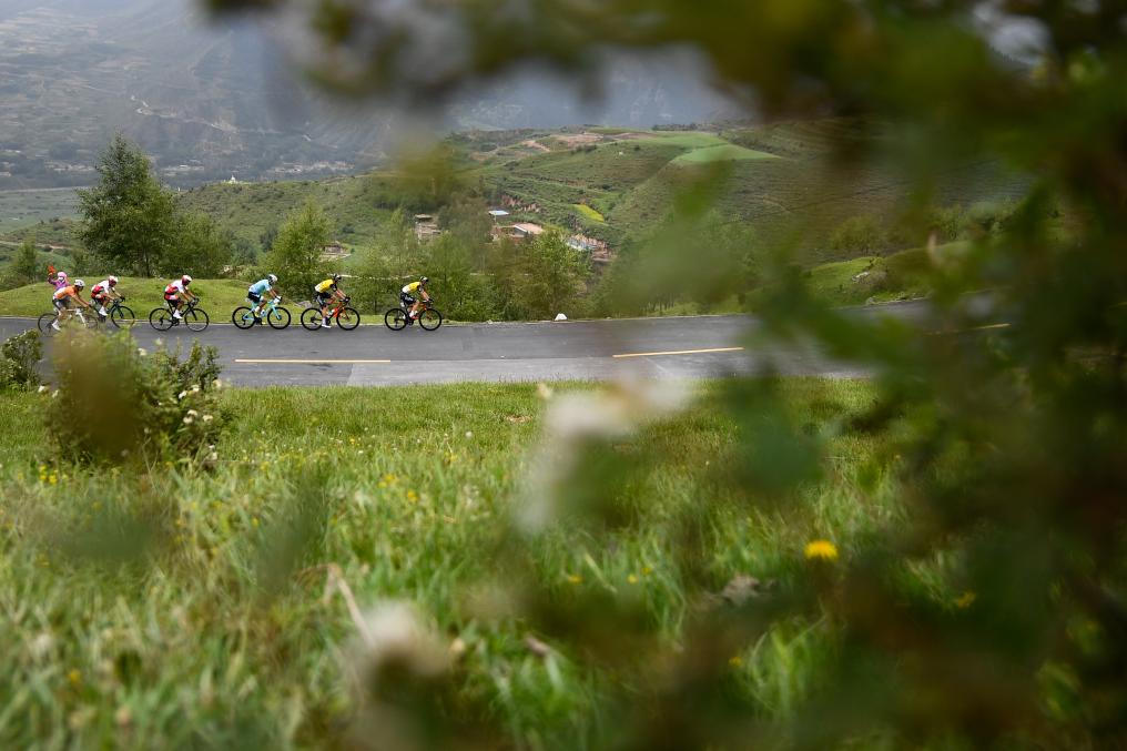 7月11日,參賽選手在比賽中騎行。新華社記者張龍攝