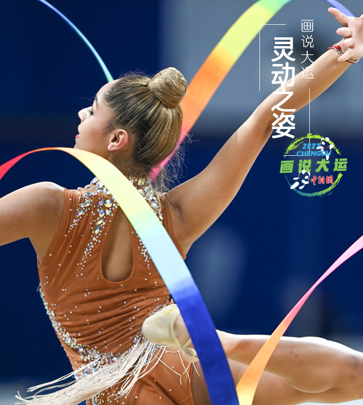 在成都第31屆世界大學(xué)生夏季運(yùn)動(dòng)會(huì)藝術(shù)體操的賽場(chǎng)上,運(yùn)動(dòng)員們用柔和挺拔的身姿,向我們?cè)忈屃饲啻旱撵`動(dòng)之美。輕盈流暢的體操動(dòng)作搭配剛?cè)岵?jì)的舞姿,這是力與美的結(jié)合,更是柔與韌的藝術(shù)!圖為南非選手DEWAN Azra參加藝術(shù)體操個(gè)人全能決賽。