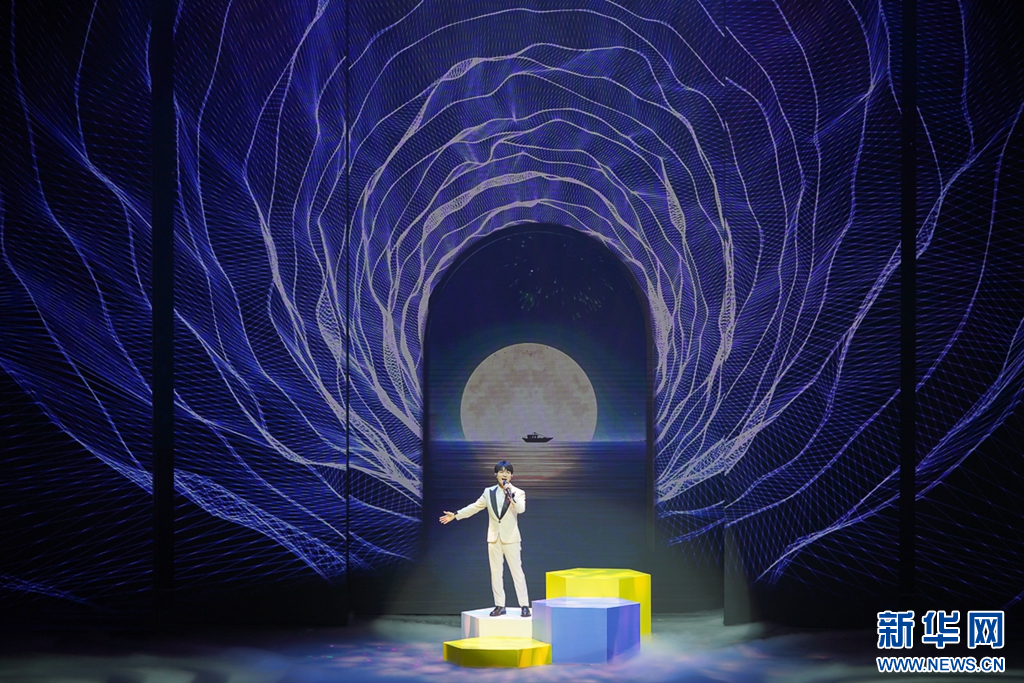 7月17日晚上,青年歌手周深在演唱歌曲《夢想的遠征》。新華網(wǎng) 肖和勇 攝
