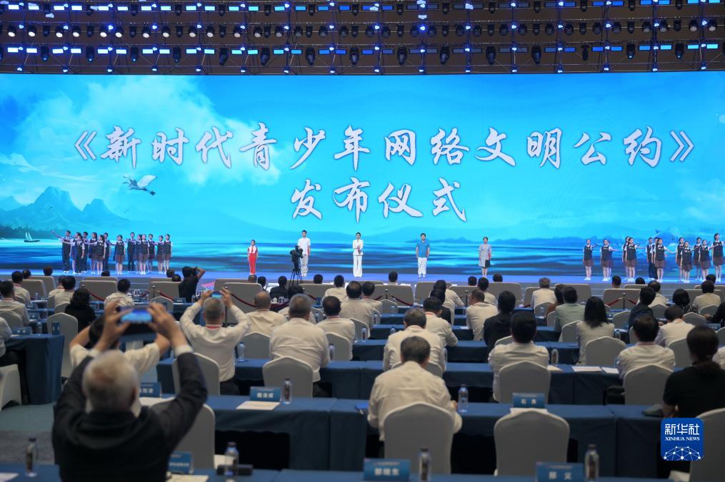 7月18日,2023年中國網(wǎng)絡(luò)文明大會(huì)主論壇發(fā)布《新時(shí)代青少年網(wǎng)絡(luò)文明公約》。新華社記者林善傳攝