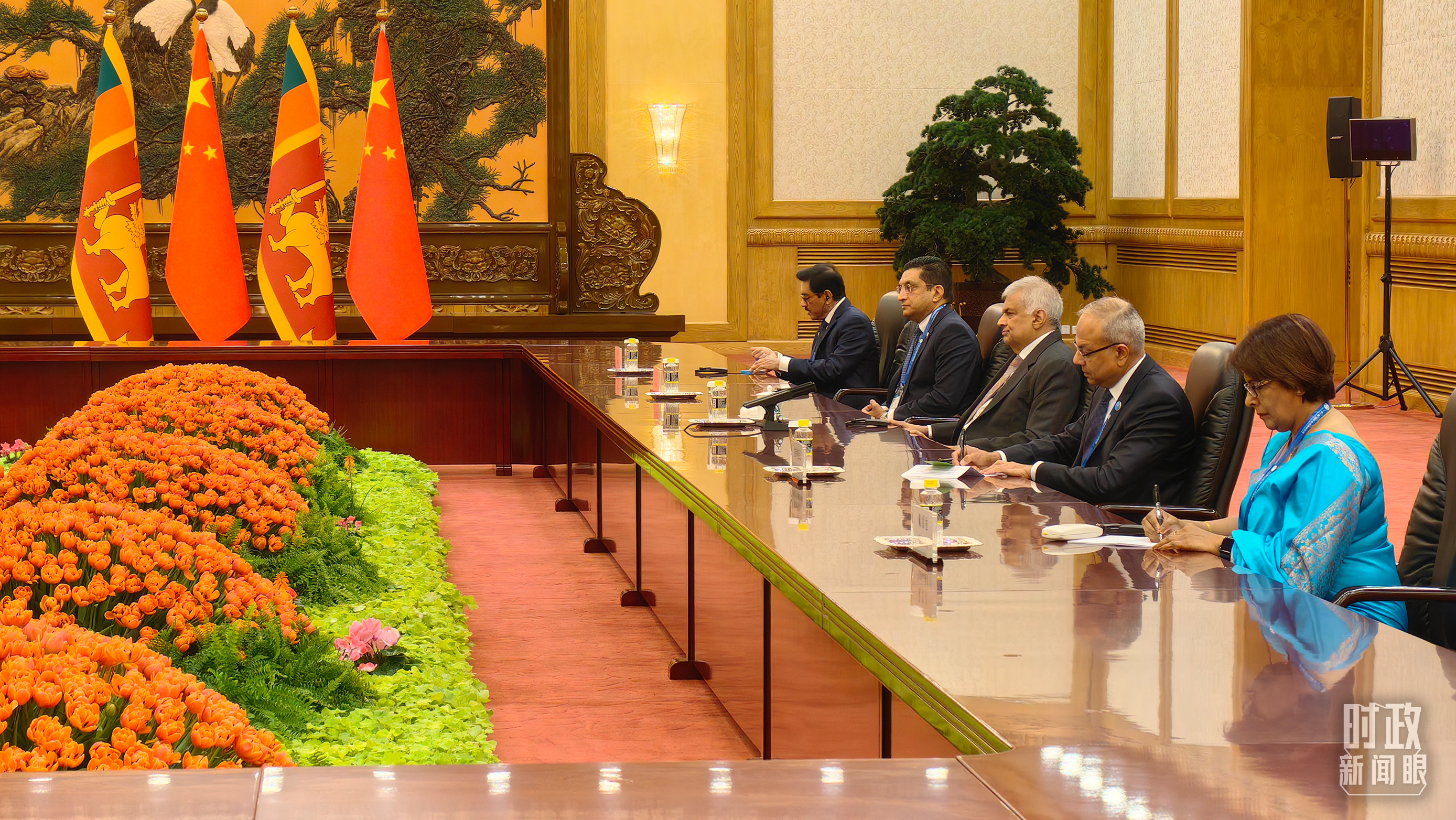 會(huì)見現(xiàn)場(chǎng)擺放的中國(guó)、斯里蘭卡國(guó)旗。(總臺(tái)央視記者范一鳴拍攝)